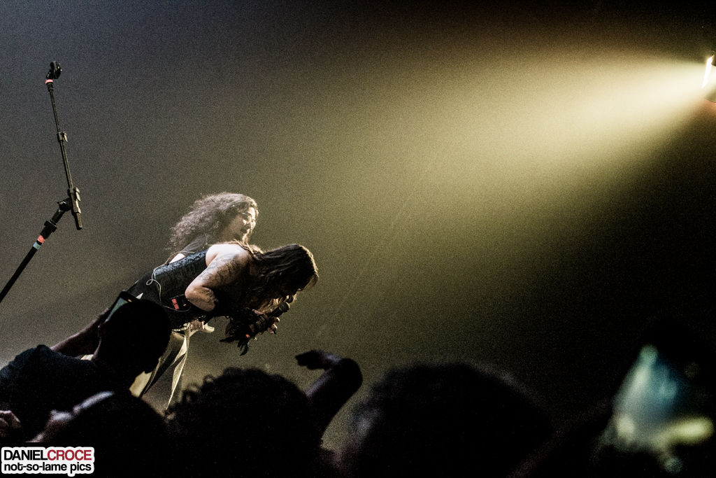 Em “Rest Calm”, literalmente o momento de descansar um pouco a voz em notas mais tranquilas, versos cantados pelo baixista Filipe e o refrão pop, Anette se prepara para o que estava por vir após a instrumental “Last of the Wilds”, esta uma linda composição que, além de ter o lado folk aflorado, sendo perfeita para dançar, ainda evidencia a técnica dos integrantes. E, então, em um dos momentos mais marcantes da noite, a cantora volta ao palco, desta vez com todos sentados, conta um pouco de sua história e simplesmente executa com emoção a espetacular “Eva”, um dos destaques da apresentação. Em conjunto com “Turn Loose the Mermaids”, o que ficou óbvio é que baladas se encaixam como uma luva na voz de Anette, tornando tudo de fato mágico. Sensacional!
