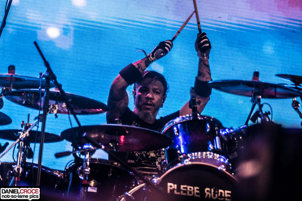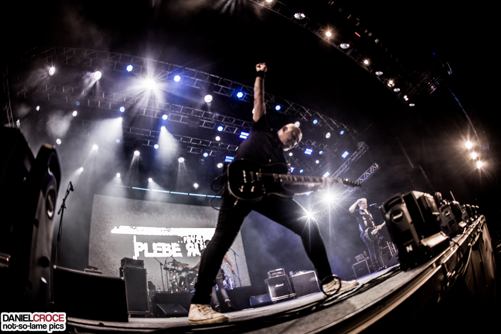 Iniciando a noite, a banda Plebe Rude com Philippe Seabra (vocal e guitarra), André X (baixo), Marcelo Capucci (bateria) e Clemente Nascimento (guitarra) entrou no palco pontualmente às 19h, entregando um jogo de luzes azuis e telões com as imagens de clipes da banda. O público vibrou e chegou mais para frente do palco no intuito de cantarem juntos. O início não foi tão empolgante; eles trouxeram os clássicos do álbum O Concreto Já Rachou, que já completou seus 40 anos. Apenas os fãs mais fervorosos sabiam todas as músicas de cor.