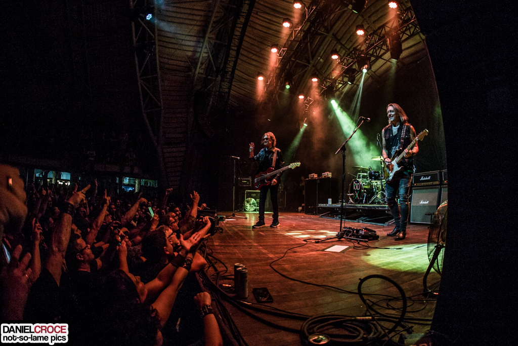 A dinâmica entre músicas e a animação da plateia, sempre enérgica, realmente chamou a atenção. Tudo fluía de um jeito tão orgânico que parecia que todos estavam unidos em prol da vibe proporcionada, tornando este um dos shows mais importantes que Hughes fez em solo tupiniquim. A cadenciada “Stay Free” (Black Communion) e seu refrão cantado em uníssono finaliza a prévia do bis. E aí a magia veio com a belíssima versão acústica de “Coast to Coast” (Trapeze), tendo Hughes apenas no formato violão e voz, abrilhantando ainda mais a noite em suas texturas e cores musicais.