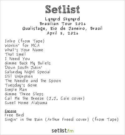 O Skynyrd inicia seus trabalhos com “Workin’ for MCA”, riff certeiro tocado pelas guitarras de Medlocke e Johnson, que cumpre com louvor a missão de substituir o “boss” Gary Rossington. Em seguida, as também clássicas “What’s Your Name” e “That Smell”, cantadas a todo vapor em uníssono. Antes de iniciar “I Need You”, Johnny dedicou a música à todas as mulheres presentes e, na sequência, mais três clássicos, “Gimme Back My Bullets”, “Saturday Night Special” e “Down South Jukin’”, quando o quarteto de cordas faz a formação no centro do palco.