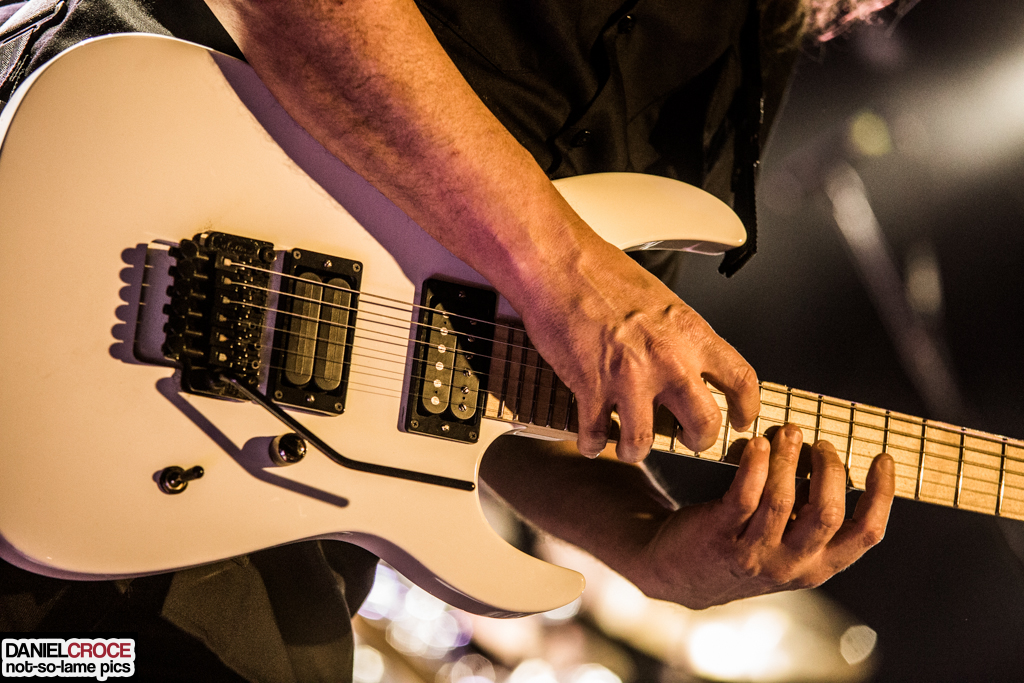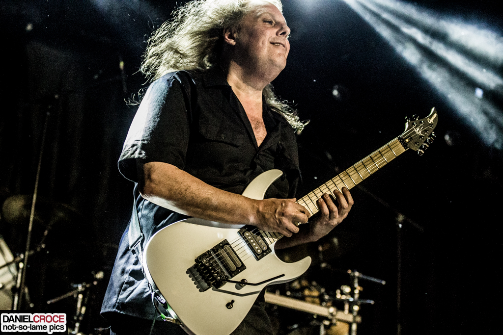 Presença certa em todos os shows da banda, a excelente “Sea of Lies” fez com que até mesmo quem estava tímido resolvesse cantar o refrão junto com Allen, o que se tornou ainda mais evidente na sensacional “Out of the Ashes”, uma das melhores da vasta lista de petardos do quinteto. Vale ressaltar que, mesmo sabendo que o timbre e interpretação poderosa do vocalista é o que mais chama a atenção de modo geral (algo comum no universo musical), é o guitarrista Romeo como brilhante compositor que está por trás de todos os mecanismos que rodam a máquina chamada Symphony X, sendo responsável por praticamente todo o arcabouço sonoro que gerou a identidade da banda. E, como o próprio Allen fala no meio do show, “esse cara aqui ao meu lado nunca se importou em ser um guitar hero, e sim um criador de músicas épicas”. O mais irônico disso tudo é que Romeo é um guitarrista fora da curva, em especial no aspecto técnico, sendo muitas vezes comparado a Yngwie Malmsteen e outros virtuosos.